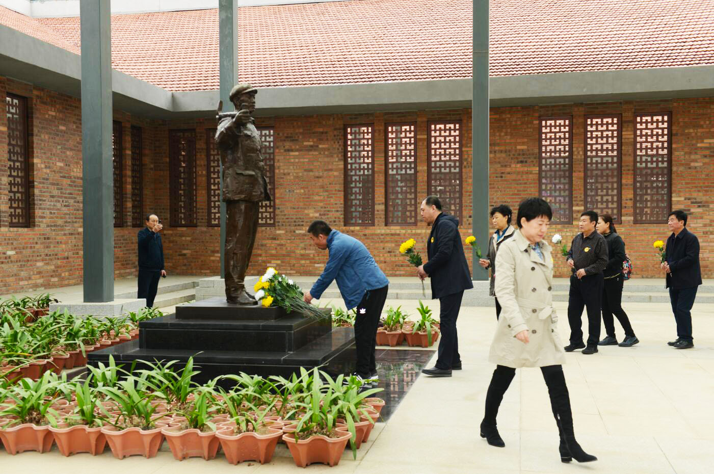 大梨樹村史展覽館的造型設(shè)計(jì)很講究,40米×40米的方方正正造型,寓意我們老書記毛豐美堂堂正正做人、堂堂正正做事。展覽館外墻采用顏色古樸的紅磚,樸實(shí)簡(jiǎn)約,也是代表了老書記簡(jiǎn)樸的一生。四面墻體采用了半鏤空的設(shè)計(jì),給人一種通透的感覺。在墻面的上半部分巧妙地嵌入了“干”字造型,下半部分嵌入了“土”字造型,寓意干字精神,扎根、生長(zhǎng)于這片土地,弘揚(yáng)、傳承于這片沃土。從空中俯瞰,展覽館外形是一個(gè)漏斗形狀,象征聚財(cái),寓意我們村在老書記的帶領(lǐng)下,苦干實(shí)干,積累了寶貴的物質(zhì)財(cái)富和精神財(cái)富,換來(lái)了今天的幸福生活。