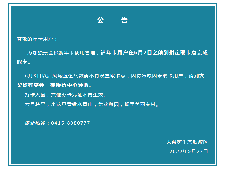 關(guān)于大梨樹旅游年卡取卡截止日期的公告