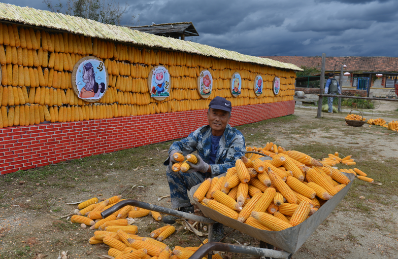 景區(qū)內(nèi)在干字廣場(chǎng)用近千盆鮮花擺出“慶豐收”字樣,曬出收獲,曬出美好,曬出幸福。同時(shí),影視城大場(chǎng)院內(nèi)晾曬谷物、打場(chǎng)子、12生肖玉米墻、“豐收號(hào)”火箭等農(nóng)耕文化景觀,也吸引了眾多游客拍照合影。